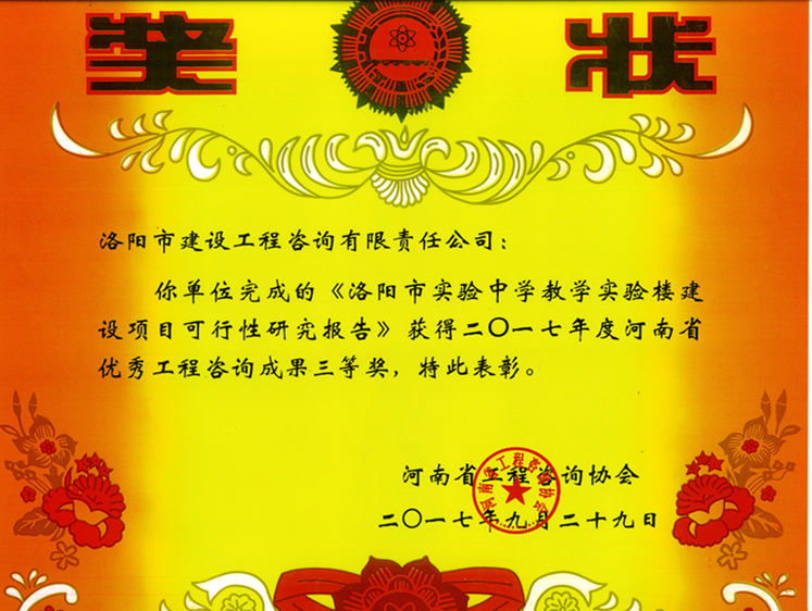 2017年河南省優(yōu)秀工程咨詢成果三等獎